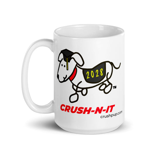 GRADUATION Doggy 2028 (Black) Crush-N-It White Glossy Mug by CRUSHPUP